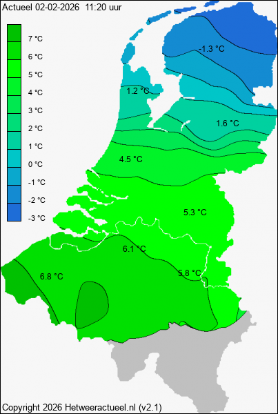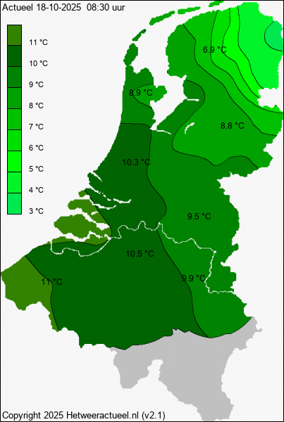 The South-East of Belgium remains light gray, as no weather stations are nearby. Chapter: hwa weather maps
